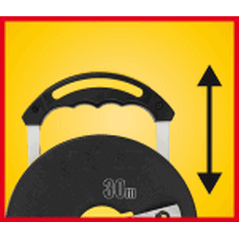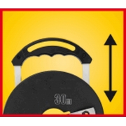 Taśma miernicza włókno szklane 30 m x 13 mm, wysuwana rączka, zaczep końcowy, przesunięty punkt "0"