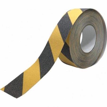 Taśma antypoślizgowa. - długość: 18 m - szerokość: 5 cm - dostępna w trzech kolorach: żółta, czarna, żółto-czarna - zmniejsza ryzyko poślizgnięcia się - do użytku wewnętrznego i zewnętrznego