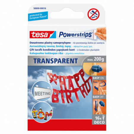 PLASTRY SAMOPRZYLEPNE POWERSTRIPS DECO 16 SZT. DO 200G PRZEZROCZYSTE (H5882700) - H5880016