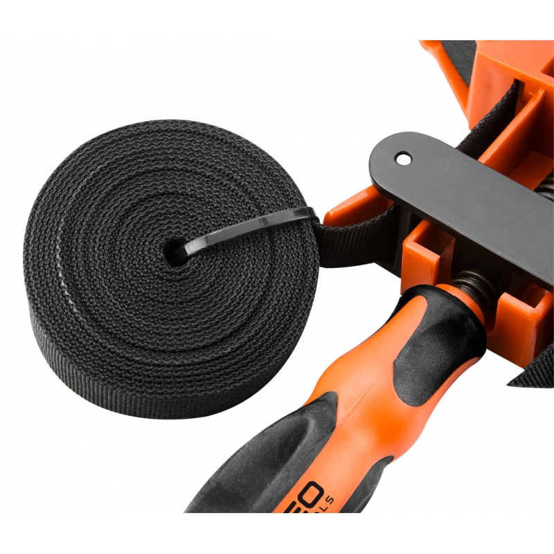 Ścisk pasowy (taśmowy) 4000x26x1,3 mm, z regulowanymi nakładkami z tworzywa sztucznego. Uchwyt dwukomponentowy