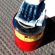 Pojemnik tłokowy służy do zwilżania szmatek, gąbek stosowanych do czyszczenia. Po naciśnięciu pompka z mosiądzu napełnia górną część pojemnika odmierzoną ilością cieczy (nadmiar spływa do pojemnika) co stanowi o oszczędności i bezpieczeństwie pracy z substancjami chemicznymi. Pojemnik został wyposażony w sitko, które działa jako dodatkowa ochrona przed samozapłonem.