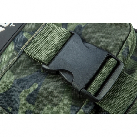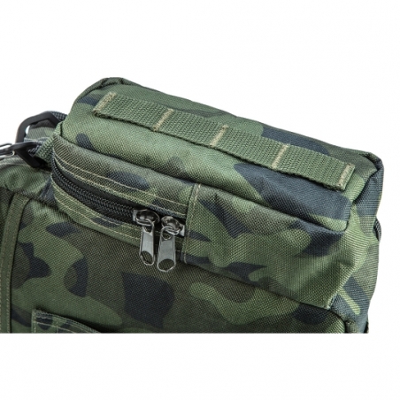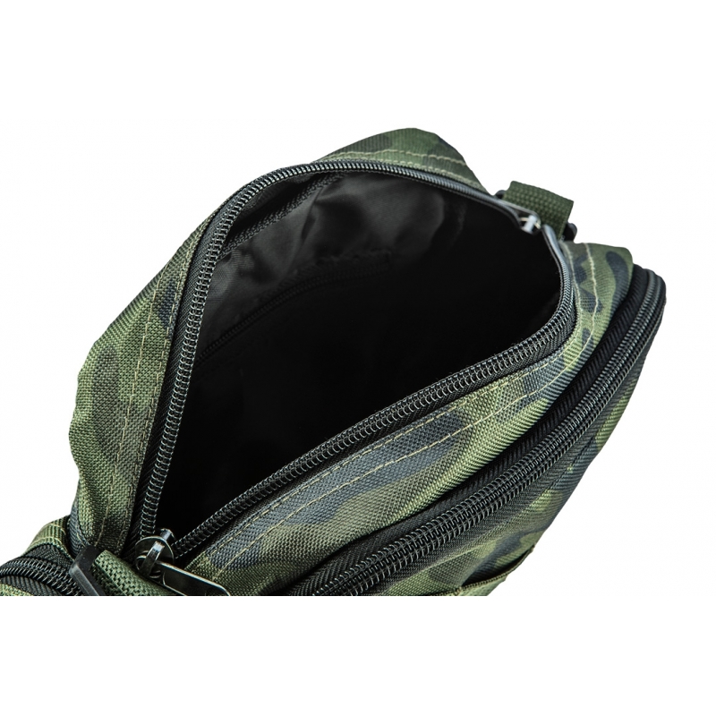 Torba turystyczna mała materiał poliester , 4 kieszenie wewnętrzne, 4 kieszenie zewnętrzne, rozkładana konstrukcja, uchwyt do przenoszenia, regulowany pasek, zaczepy na sprzęt, zaczepy na pasek, mocne zamki