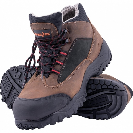 RAW-POL BCH BBR to męskie buty bezpieczne typu trzewik, wykonane ze skóry bydlęcej licowej z dodatkowymi wzmocnieniami na czubku i pięcie. Podeszwa gumowa zapewnia właściwości antypoślizgowe, olejoodporne i antyelektrostatyczne, a część spodnia jest odporna na kontakt z gorącym podłożem. Kompozytowy podnosek 200 J oraz wielowarstwowa wkładka antyprzebiciowa 1100 N gwarantują pełną ochronę. Model METAL FREE. Kategoria S3 SRC HRO.