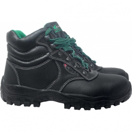 Buty podwyższane bezpieczne MERCURIO. Rozmiary: 38-48 Kategoria: S3 SRC Pokrycie: skóra wodoodporna Wyściółka: mieszanka nitrylu i EVA, przewiewna tkanina, zapobiegająca otarciom, wchłaniająca pot Wkładka: wymienna, antystatyczna, pokryta tkaniną Podeszwa: podwójny poliuretan Stalowy podnosek, stalowa wkładka w podeszwie Spełniają normy: EN20344, EN20345