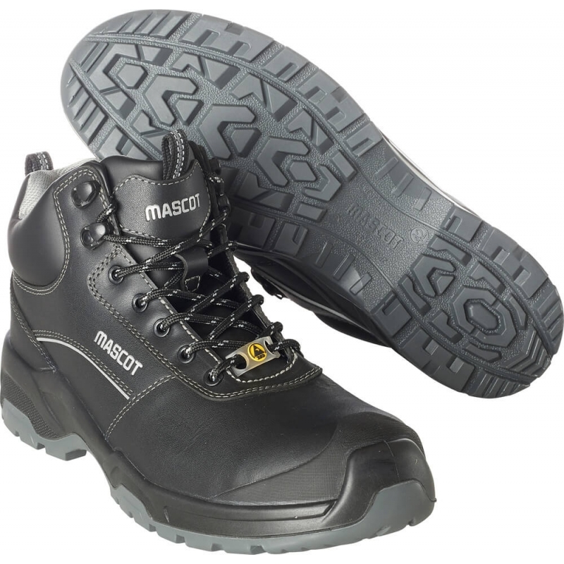 Wkładka optymalnie wspierająca sklepienie, dzięki której zmniejsza się tendencja do powstawania płaskostopia.; Przednia część obuwia wygina się bardzo elastycznie razem ze stopą.; Kompozytowy podnosek nie zawiera elementów metalowych. Materiał kompozytowy charakteryzuje się tym, że nie przewodzi ani zimna, ani gorąca. Dlatego podnoski z kompozytu zapewniają dodatkową wygodę zarówno w niższych, jak i wyższych temperaturach.; Stabilizujący opatentowany przez MASCOT wielofunkcyjny przegub ułatwiający poruszanie się na nierównych podłożach i pracę na drabinach.; Absorbująca wstrząsy, miękka i elastyczna dwukomponentowa podeszwa z PU/PU.; Antypoślizgowe, trwałe podeszwy (z certyfikatem SCR).; Zatwierdzony zgodnie z normą ESD.