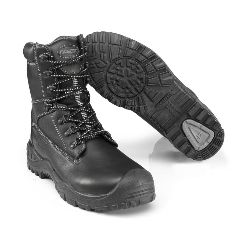 Dzięki izolującej podszewce Thinsulate™ Insulation stopa pozostaje w cieple mimo zimna na zewnątrz.; Podeszwy odporne na oleje, benzynę. kontakt z powierzchniami o temperaturze do 300 °C.; Stabilizujący opatentowany przez MASCOT wielofunkcyjny przegub ułatwiający poruszanie się na nierównych podłożach i pracę na drabinach.; Elastyczna ochrona antyprzebiciowa ze specjalnego materiału zwiększa wygodę i zapobiega powstawaniu mostków termicznych. Ponadto powierzchnia materiałowej ochrony antyprzebiciowej jest szersza w porównaniu z ochroną stalową, więc większa część stopy chroniona jest przed gwoździami i ostrymi przedmiotami.; Ergonomiczny aluminiowy podnosek zapewniający dużą swobodę ruchu.; Dzięki niezwykle trwałemu wzmocnieniu ProNose z PU obuwie doskonale nadaje się do pracy w pozycji klęczącej.