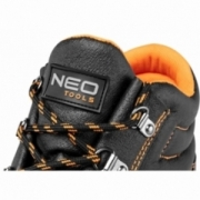 Trzewiki robocze, klasa S1 SRC, skórzana cholewka z wytłaczanej dwoiny, metalowe szlufki, podwójne i potrójne szwy, stalowy podnosek zapewniający ochronę przed uderzeniami z energią równą 200J, zabudowana pięta; podeszwa dwumateriałowa, odporność na oleje, benzynę i inne rozpuszczalniki organiczne; właściwości antyelektrostatyczne; absorbcja energii w części piętowej według klasyfikacji obuwia bezpiecznego wg normy EN ISO 20345, rozmiar 42