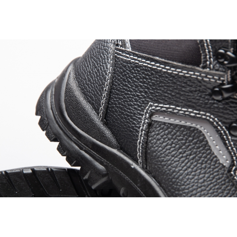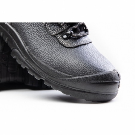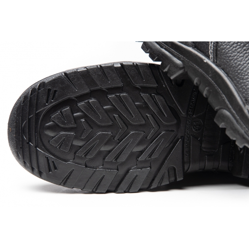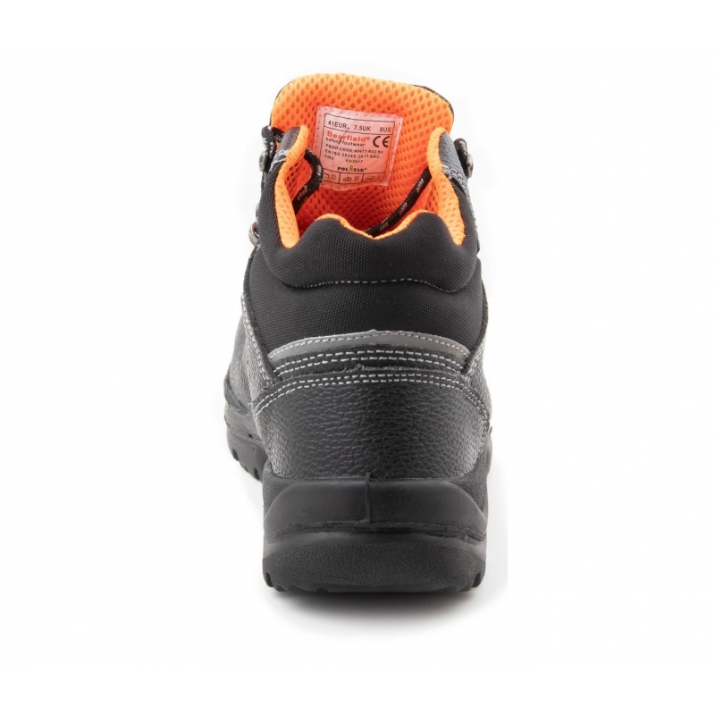 TRZEWIK POLSTAR BEARFIELD R02 S3 SRCTrzewiki Bearfield R02 S3 to solidne obuwie ochronne za kostkę, wykonane ze skóry dwoinowej o grubości 1,6–1,8 mm. Materiał posiada podwyższoną wodoodporność, zapewniając odporność na absorpcję wody przez 60 minut. Model wyposażony jest w kompozytowy podnosek odporny na uderzenia do 200 J oraz kevlarową wkładkę antyprzebiciową chroniącą przed przekłuciem do 1100 N. Wnętrze buta wykończono higroskopijną, przewiewną wyściółką, która zapobiega otarciom i odprowadza wilgoć. Podeszwa PU/PU o podwójnej gęstości jest antypoślizgowa (SRC), olejoodporna, odporna na węglowodory i zapewnia absorpcję energii pięty. Elementy odblaskowe zwiększają widoczność użytkownika.