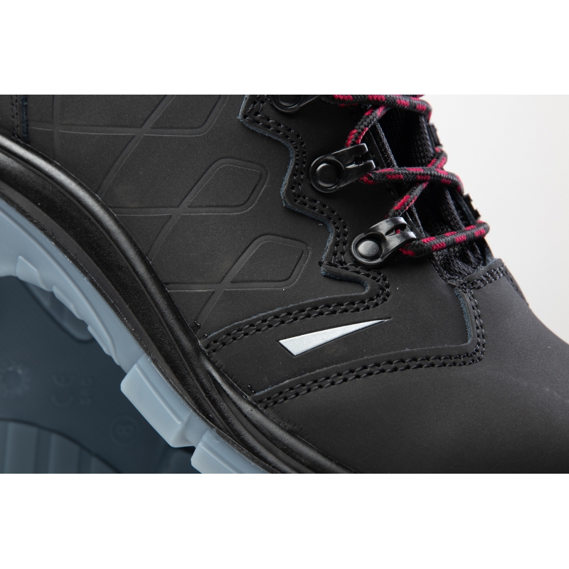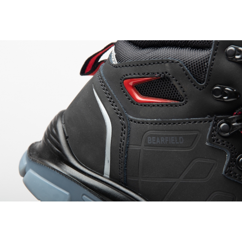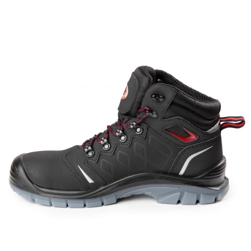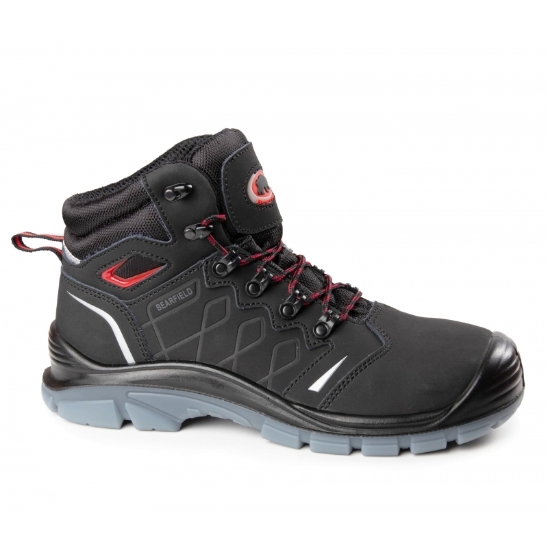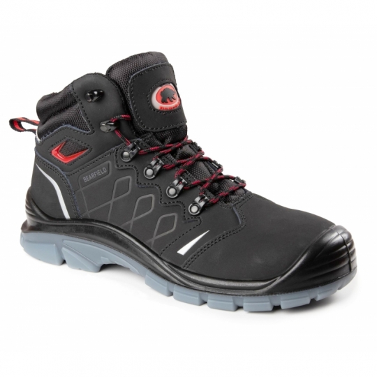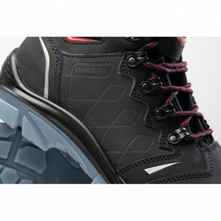 TRZEWIK POLSTAR BEARFIELD K14 S3 SRCTrzewiki Bearfield K14 to wytrzymałe obuwie ochronne za kostkę, wykonane ze skóry nubukowej o grubości 1,6–1,8 mm. Materiał posiada podwyższoną wodoodporność, zapewniając odporność na absorpcję wody przez 60 minut. Model wyposażony jest w kompozytowy podnosek odporny na uderzenia do 200 J oraz kevlarową wkładkę antyprzebiciową chroniącą przed przekłuciem do 1100 N. Wnętrze buta wykończono higroskopijną, przewiewną wyściółką, która zapobiega otarciom i odprowadza wilgoć. Podeszwa PU/TPU jest odporna na węglowodory, olejoodporna, antyelektrostatyczna i posiada właściwości antypoślizgowe SRC. Transparentna konstrukcja podeszwy zwiększa trwałość i estetykę. W zestawie znajduje się drugi komplet sznurówek.