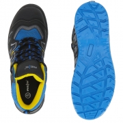 RAW-POL BRSWEDEN‑T BNY to nowoczesne buty bezpieczne typu trzewik wykonane z siateczki i mikrofibry z wierzchnią warstwą PU. Model zakrywa kostkę, posiada stalowy podnosek 200 J, stalową wkładkę antyprzebiciową 1100 N oraz podeszwę PU o podwójnej gęstości o właściwościach antypoślizgowych, olejoodpornych i antystatycznych. Kategoria S1P SRC.