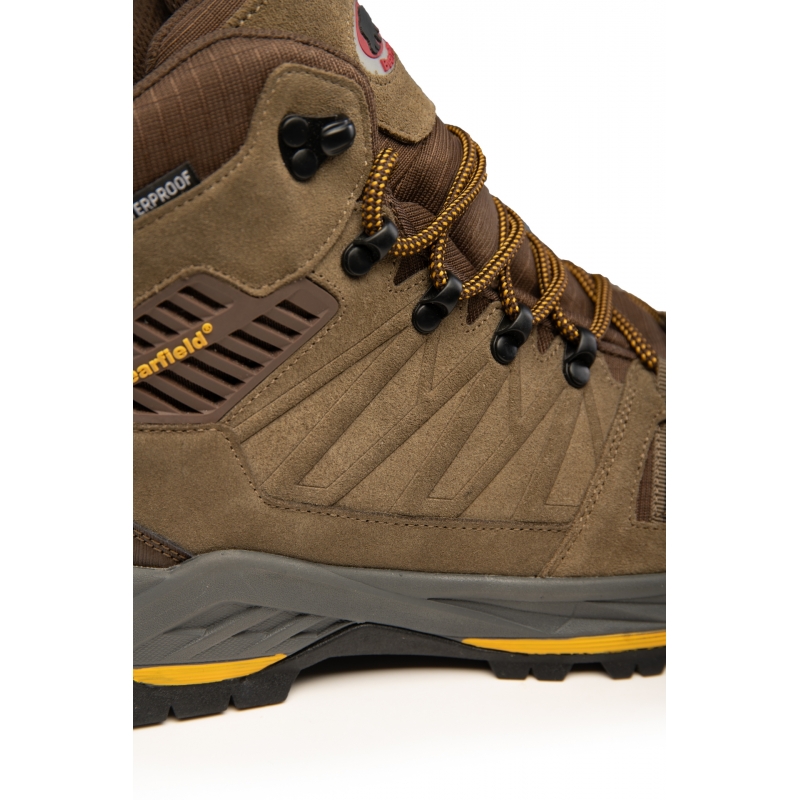TRZEWIK POLSTAR BEARFIELD X‑TRAIL O6 SR FO (BRĄZ)Trzewiki Bearfield X‑Trail O6 to lekkie i wygodne obuwie robocze do kostki, wykonane ze skóry zamszowej w kolorze brązowym. Model nie posiada podnoska ani wkładki antyprzebiciowej, dzięki czemu jest elastyczny i komfortowy podczas długotrwałego użytkowania. Wewnątrz zastosowano higroskopijną, przewiewną wyściółkę z membraną wodoodporną, która zwiększa komfort pracy w zróżnicowanych warunkach. Podeszwa EVA/GUMA zapewnia właściwości antypoślizgowe SR oraz odporność na olej napędowy (FO).