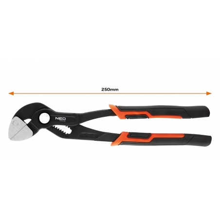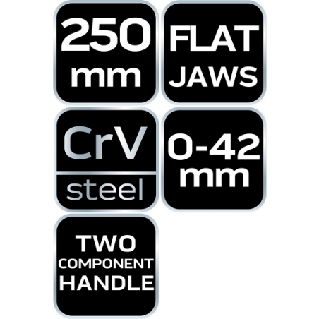 Szczypce do armatury, szczęki płaskie, długość 250mm, stal chromowo wanadowa, rozstaw szczęk 0-42 mm, dwukomponentowy uchwyt, zębaty przegub nastawny