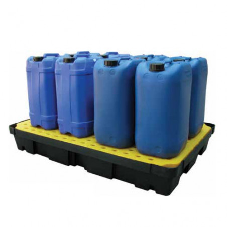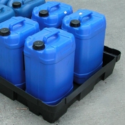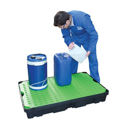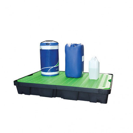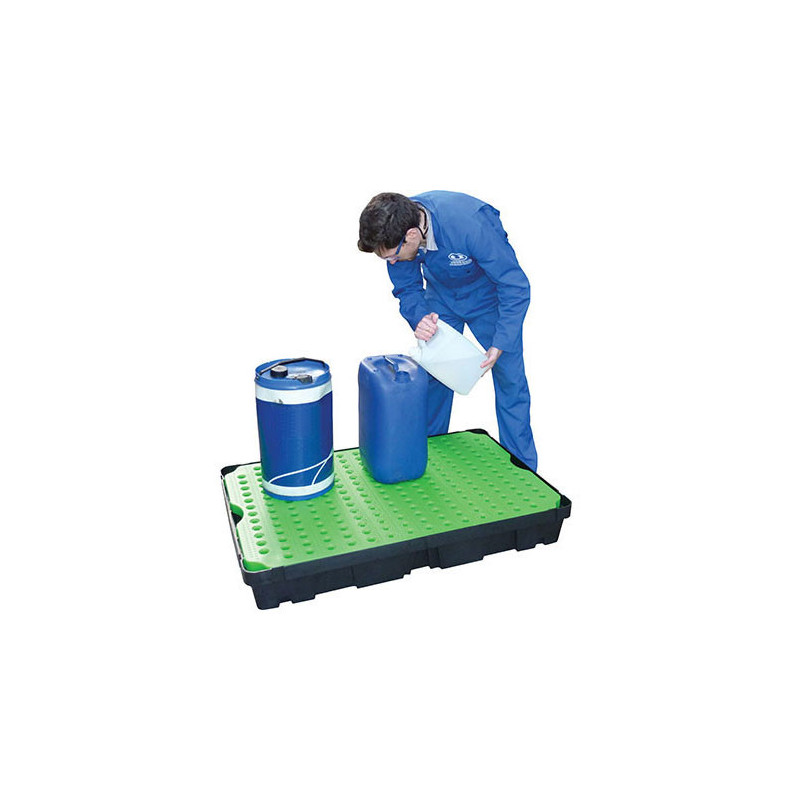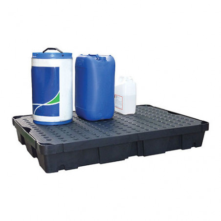 Wanienka wychwytowa do zatrzymania wyciekających płynów. Wykonana z bardzo trwałego i odpornego na chemikalia polietylenu w 100% do recyklingu. Przeznaczona do składowania mniejszych pojemników, kanistrów, puszek z olejami, chemikaliami. Miejsce zastosowania do stałego wyłapywania wycieków lub do dozowania płynów z pojemników.