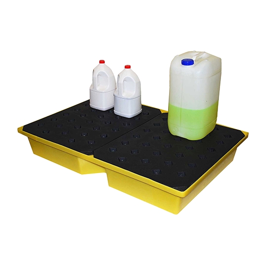 Solidna wanna wychwytowa z integralnymi nogami zapewniająca dostęp do wózka paletowego, wanna jest wyposażona w zdejmowaną kratkę i jest idealna do małych pojemników, zabezpieczająca przed kapaniem i wyciekiem.