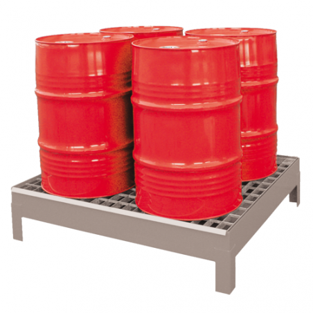 Konstrukcja z blachy stalowej o grubości 3 mm. Wyjmowane ocynkowane kraty. Wolna przestrzeń 100 mm do transportu wózkiem widłowym.