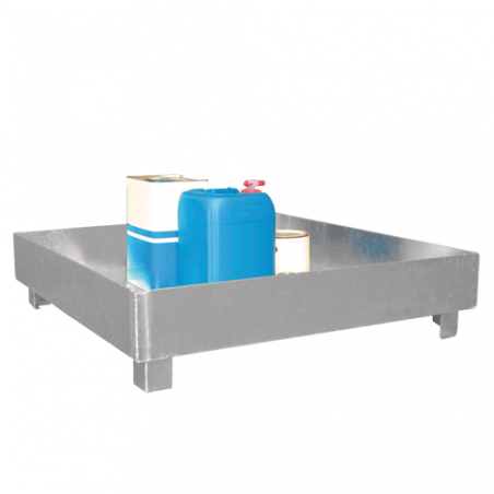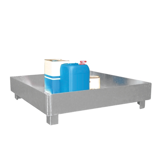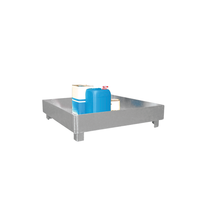 Wanna wychwytowa do przechowywania cieczy szkodliwych i łatwopalnych. Wanna z 3 mm ocynkowanej blachy stalowe bez kraty ociekowej. Przestrzeń 10 cm od podłoża ułatwi transport. Wymiary: 1200 x 1200 x 300 mm, objętość: 260 litrów, pojemność: 4 x 200 litrów.