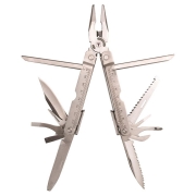 Narzędzie wielofunkcyjne, 13 końcówek, szczypce, nóż, piła, skrobak, wkrętak krzyżowy, pilnik, wkrętak płaski, szpikulec, otwieracz butelek, otwieracz puszek i inne