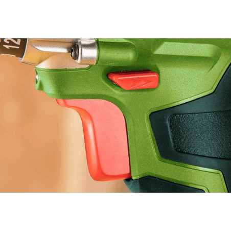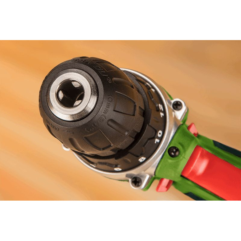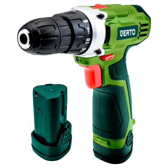 Wiertarko-wkrętarka akumulatorowa 10.8V Li-Ion 1300 mAh; obroty prawo-lewo; I bieg: 0-350 min ⁻¹ II bieg 0-1350 min⁻¹; zakres uchwytu 0.8-10 mm; zakres momentu obrotowego 1-18 (oraz opcja wiercenia), ładowanie akumulatora 3 godz., hamulec wrzeciona, (LxH) 213 x 215 mm, masa 1.1 kg,