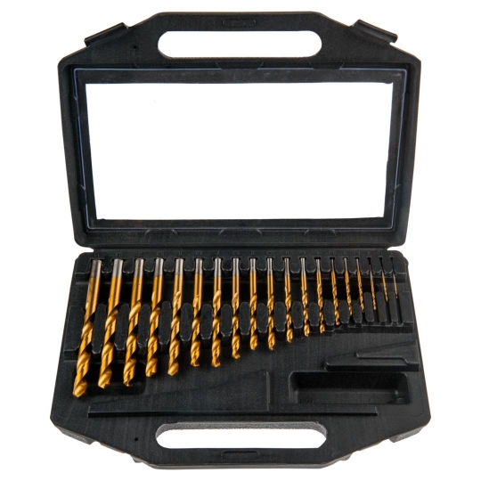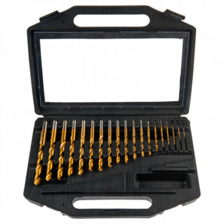 Wiertła do metalu HSS-TiN, 1.0-10.0 mm, zestaw 19 szt., 1.0, 1.5, 2.0, 2.5, 3.0, 3.5, 4.0, 4.5, 5.0, 5.5, 6.0, 6.5, 7.0, 7.5, 8.0, 8.5, 9.0, 9.5, 10.0 mm