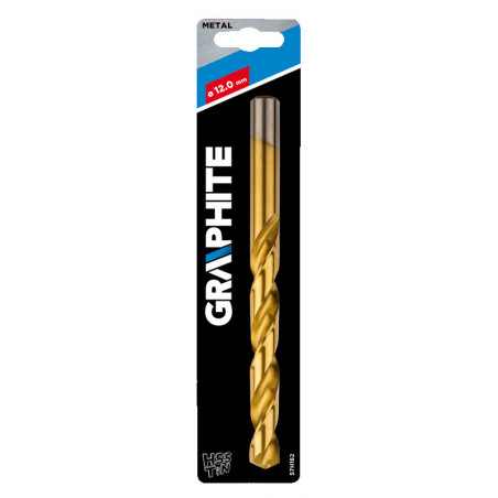 Wiertło do metalu HSS-TiN, 12 mm, głęboko szlifowane, stal 9341, kąt wierzchołkowy 135°, korekta ścinu, DIN338