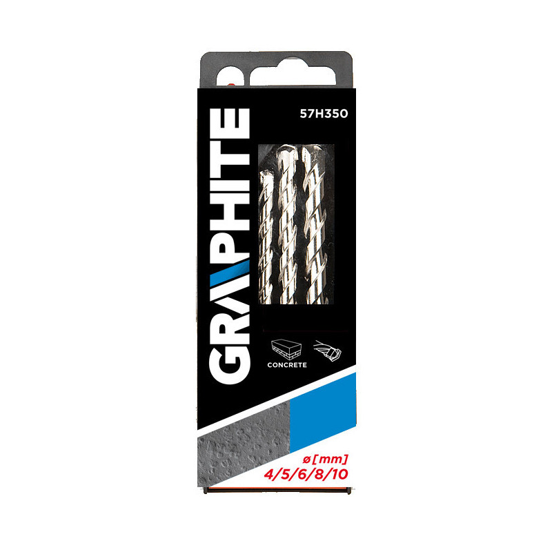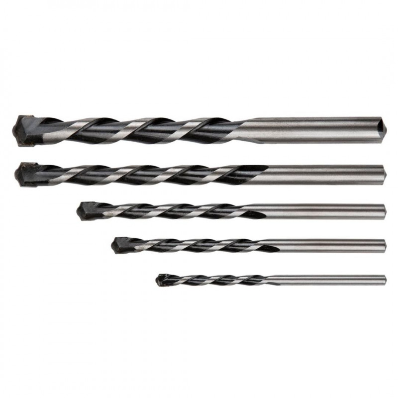 Wiertła do betonu, zestaw 5 szt., końcówka motylkowa, 4 x 75, 5 x 100, 6 x 100, 8 x 120, 10 x 120 mm