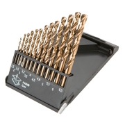 Wiertła do metalu HSS-Co, 1.5-6.5 mm, zestaw 13 szt., 1.5, 2, 2.5, 3, 3.2, 3.5, 4, 4.2, 4.8, 5, 5.5, 6, 6.5 mm, głęboko szlifowane, stal M35, kąt wierzchołkowy 135°, korekta ścinu, DIN338