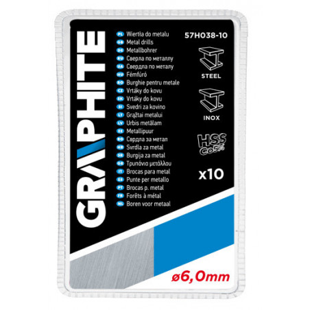 Wiertła do metalu HSS-Co, 6 mm, zestaw 10 szt., głęboko szlifowane, stal M35, kąt wierzchołkowy 135°, korekta ścinu, DIN338
