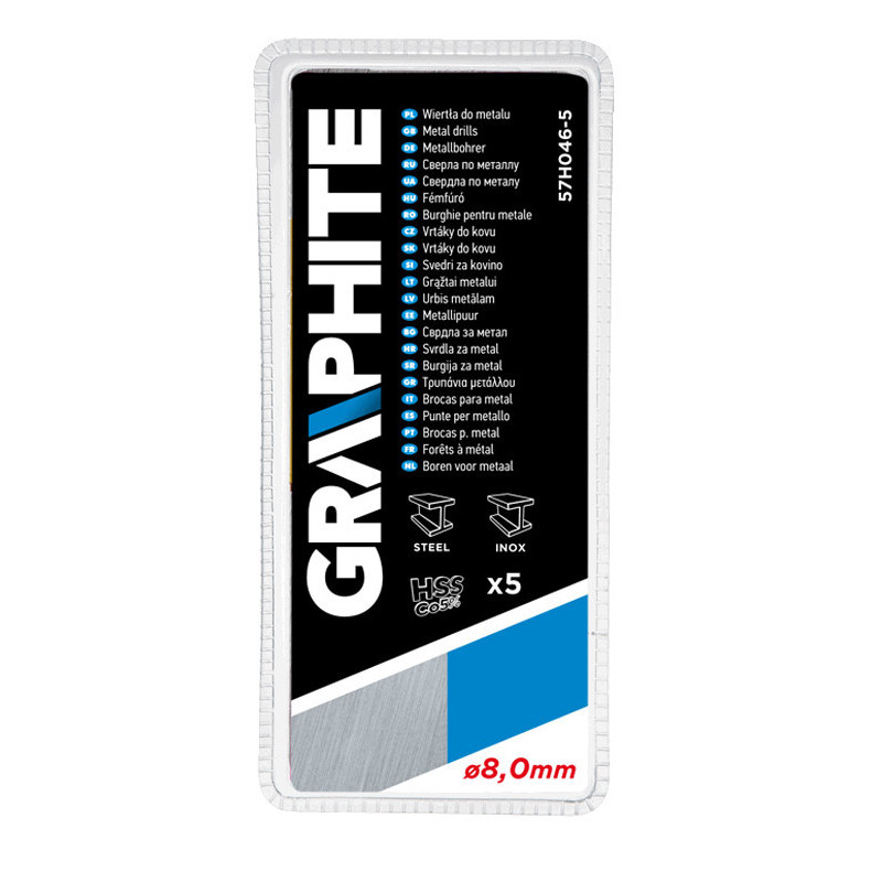 Wiertła do metalu HSS-Co, 8 mm, zestaw 5 szt., głęboko szlifowane, stal M35, kąt wierzchołkowy 135°, korekta ścinu, DIN338