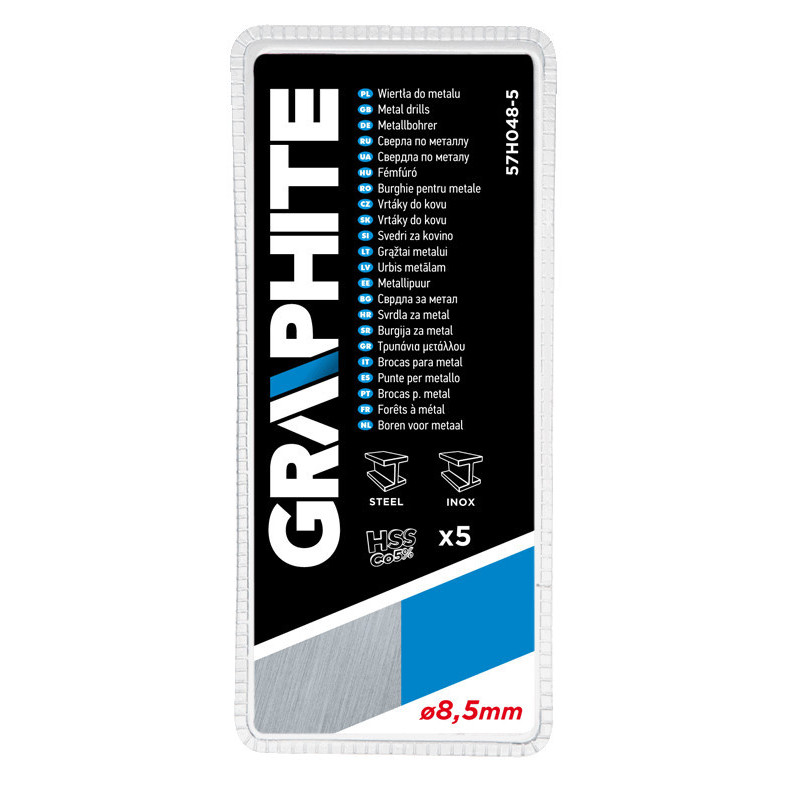 Wiertła do metalu HSS-Co, 8.5 mm, zestaw 5 szt., głęboko szlifowane, stal M35, kąt wierzchołkowy 135°, korekta ścinu, DIN338
