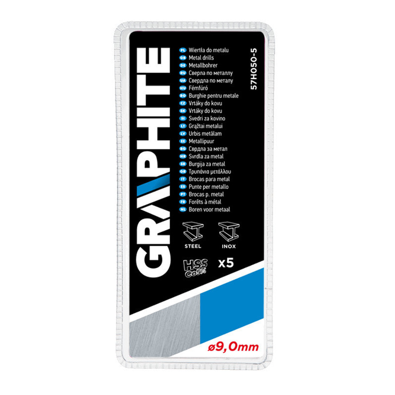 Wiertła do metalu HSS-Co, 9 mm, zestaw 5 szt., głęboko szlifowane, stal M35, kąt wierzchołkowy 135°, korekta ścinu, DIN338