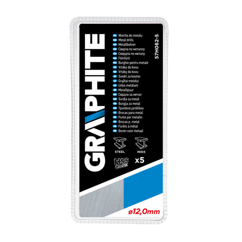 Wiertła do metalu HSS-Co, 12 mm, zestaw 5 szt., głęboko szlifowane, stal M35, kąt wierzchołkowy 135°, korekta ścinu, DIN338