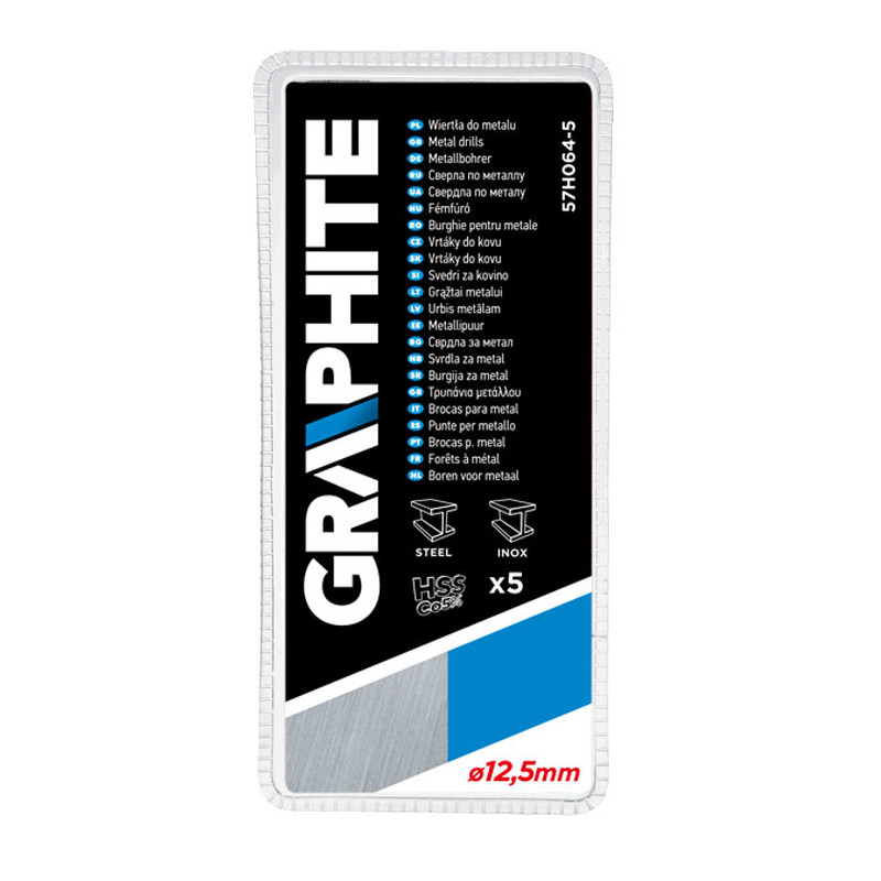 Wiertła do metalu HSS-Co, 12.5 mm, zestaw 5 szt., głęboko szlifowane, stal M35, kąt wierzchołkowy 135°, korekta ścinu, DIN338
