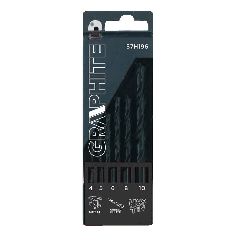 Wiertła do metalu HSS-TiN, 4.0 - 10.0 mm, zestaw 5 szt., 4, 5, 6, 8,10 mm, głęboko szlifowane, stal 9341, kąt wierzchołkowy 135°, korekta ścinu, DIN338