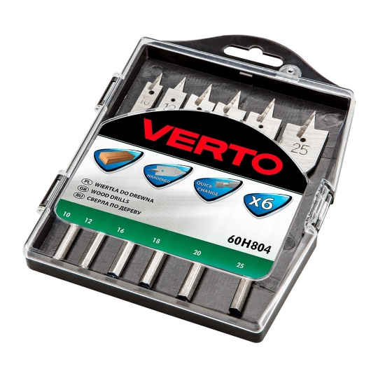 Wiertła do drewna łopatkowe, 10,12,16,18,20,25mm, zestaw 6 szt.