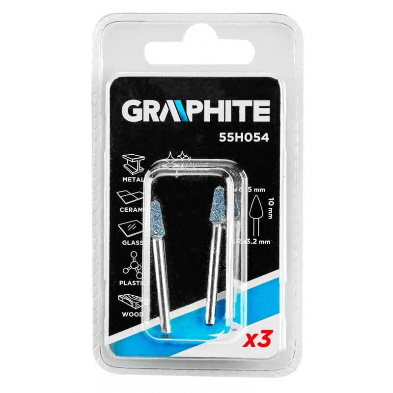 Kamień szlifierski stożek 5 x 10 mm, trzpień 3.2 mm, tlenek aluminium, 3 szt.