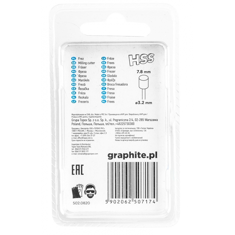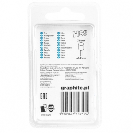 Frez HSS walec 7.8 mm, trzpień 3.2 mm, stal szybkotnąca HSS, 2 szt.
