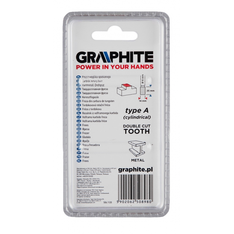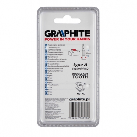 Frez do metalu, typ A - walcowy (A 1425), węglik spiekany, średnica 14 mm, nacięcie podwójne, długość robocza 25 mm, trzpień 6 x 45 mm, do szlifierki prostej.