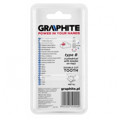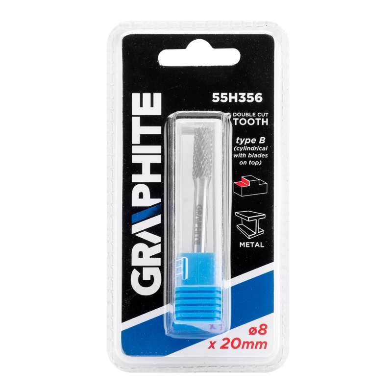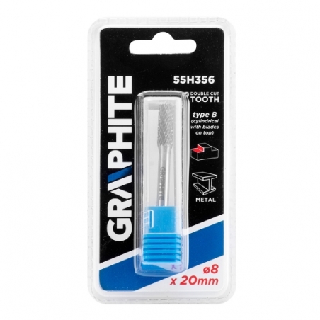 Frez do metalu, typ B - walcowy (B 0820), węglik spiekany, średnica 8 mm, nacięcie podwójne, długość robocza 20 mm, trzpień 6 x 45 mm, do szlifierki prostej.