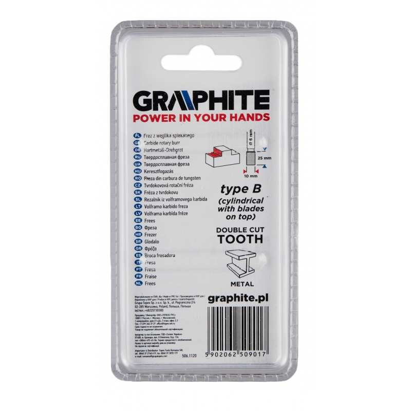 Frez do metalu, typ B - walcowy (B 1025), węglik spiekany, średnica 10 mm, nacięcie podwójne, długość robocza 25 mm, trzpień 6 x 45 mm, do szlifierki prostej.