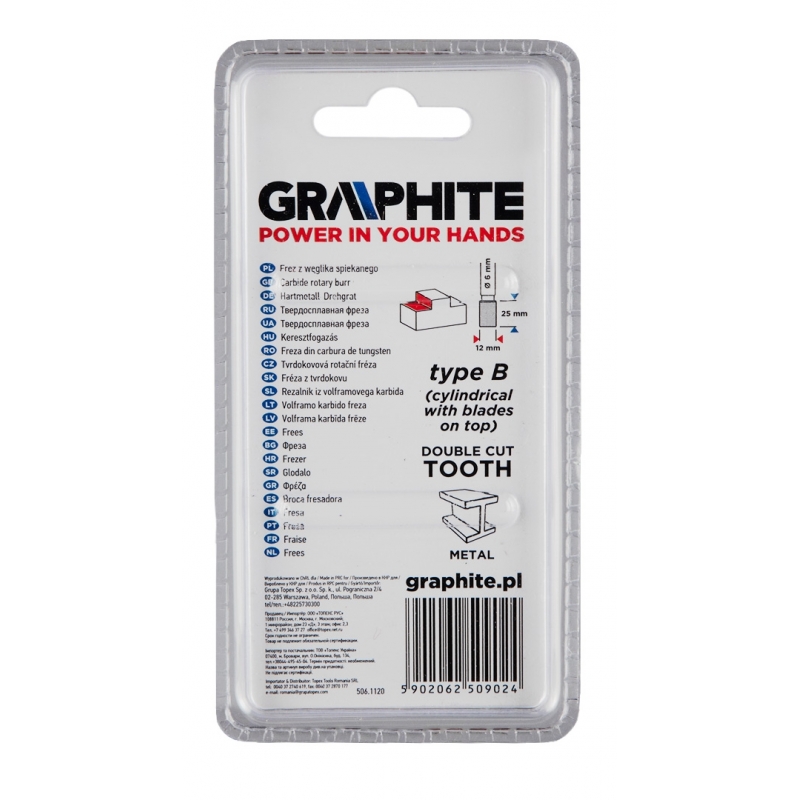 Frez do metalu, typ B - walcowy (B 1225), węglik spiekany, średnica 12 mm, nacięcie podwójne, długość robocza 25 mm, trzpień 6 x 45 mm, do szlifierki prostej.