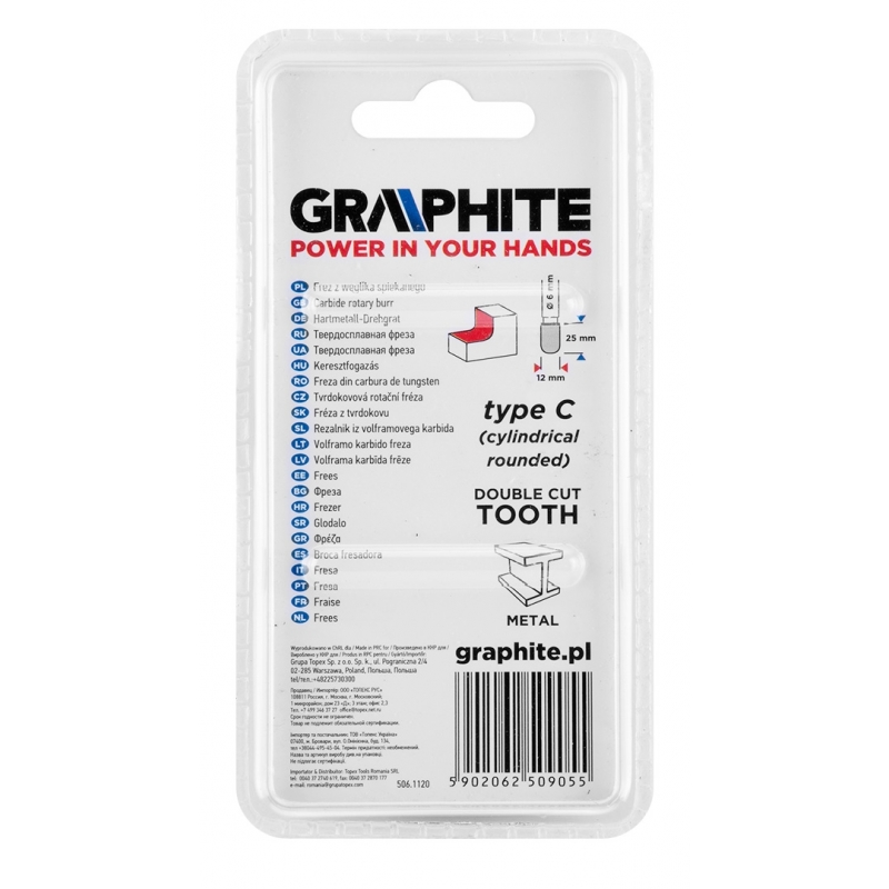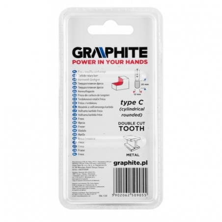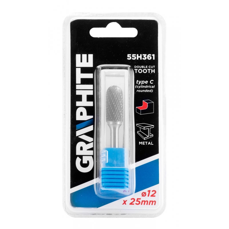 Frez do metalu, typ C - walcowy (C 1225), węglik spiekany, średnica 12 mm, nacięcie podwójne, długość robocza 25 mm, trzpień 6 x 45 mm, do szlifierki prostej.