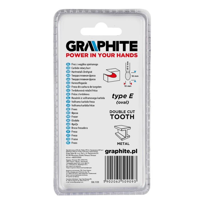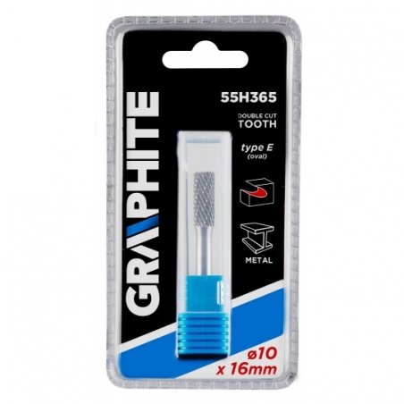 Frez do metalu, typ E - owalny (E 1016), węglik spiekany, średnica 10 mm, nacięcie podwójne, długość robocza 16 mm, trzpień 6 x 45 mm, do szlifierki prostej.
