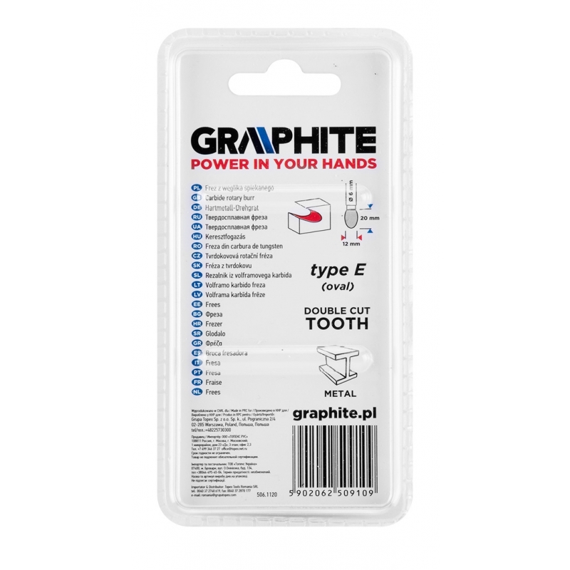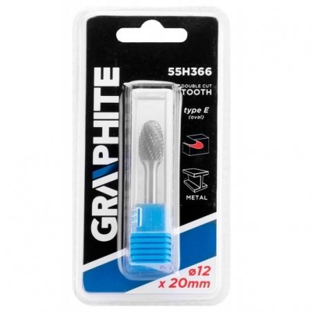 Frez do metalu, typ E - owalny (E 1220), węglik spiekany, średnica 12 mm, nacięcie podwójne, długość robocza 20 mm, trzpień 6 x 45 mm, do szlifierki prostej.