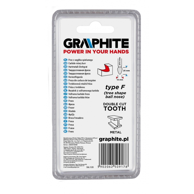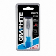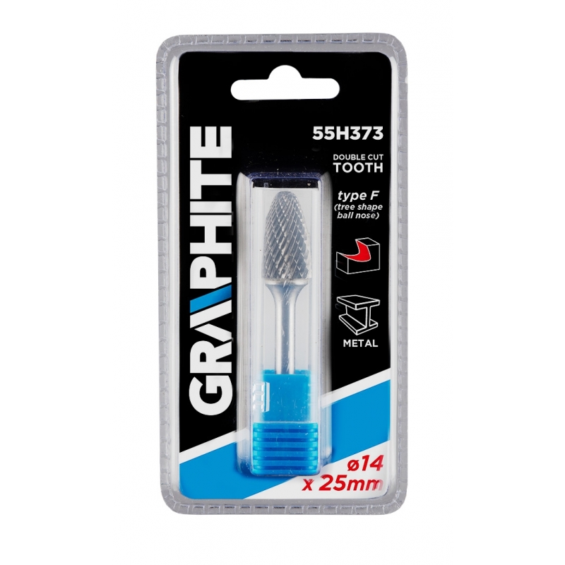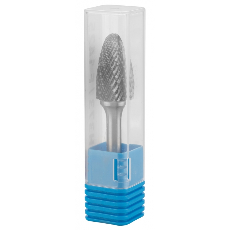 Frez do metalu, typ F - ostrołukowy zaokrąglony (F 1425), węglik spiekany, średnica 14 mm, nacięcie podwójne, długość robocza 25 mm, trzpień 6 x 45 mm, do szlifierki prostej.