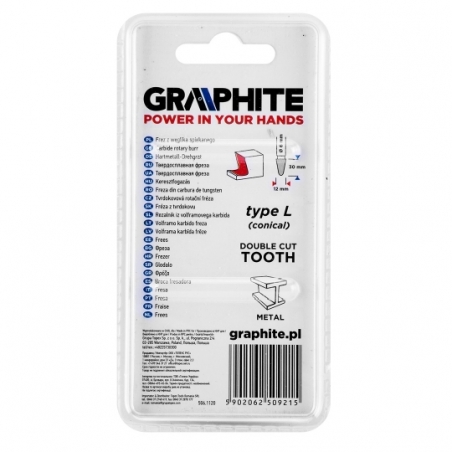 Frez do metalu, typ L - stożkowy (L 1230), węglik spiekany, średnica 12 mm, nacięcie podwójne, długość robocza 30 mm, trzpień 6 x 45 mm, do szlifierki prostej.