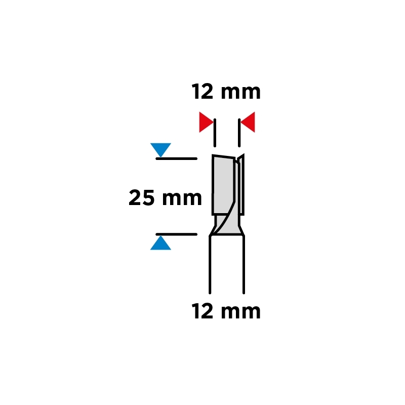 Frez palcowy dwuostrzowy, węglik spiekany płytka (HM), średnica 12 mm, wysokość robocza 25 mm, średnica trzpienia 12 mm, do drewna, PCV, płyt wiórowych, dwa ostrza