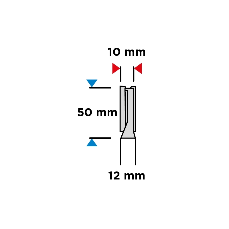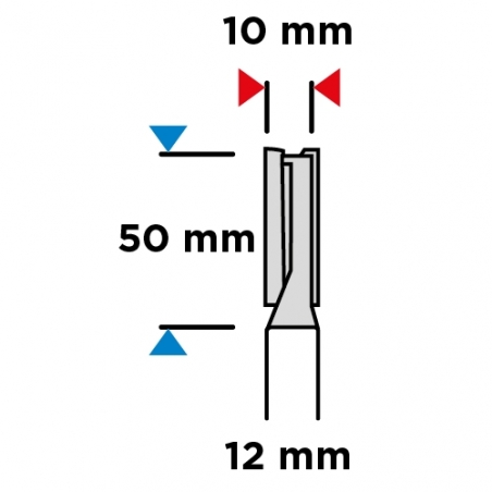 Frez palcowy dwuostrzowy długi, węglik spiekany płytka (HM), średnica 10 mm, wysokość robocza 50 mm, średnica trzpienia 12 mm, do drewna, PCV, płyt wiórowych, dwa ostrza
