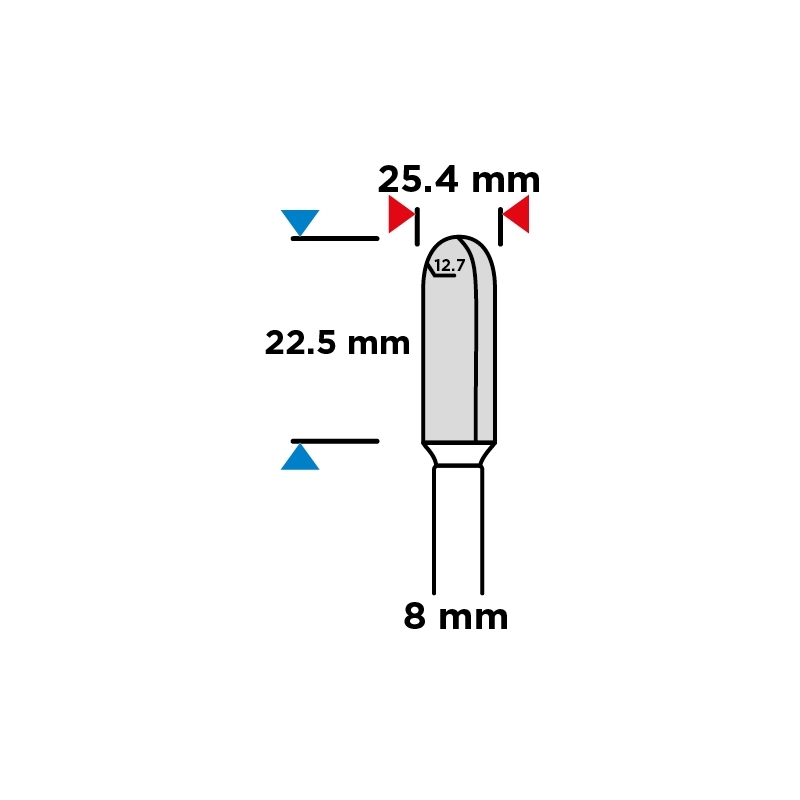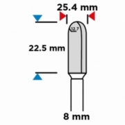 Frez do rowków długi typu U, płytka z węglika spiekanego (HM), średnica robocza freza 25.4 mm, długość robocza 22.5 mm, średnica trzpienia 8 mm, do drewna litego, płyta MDF, płyta wiórowa, sklejka