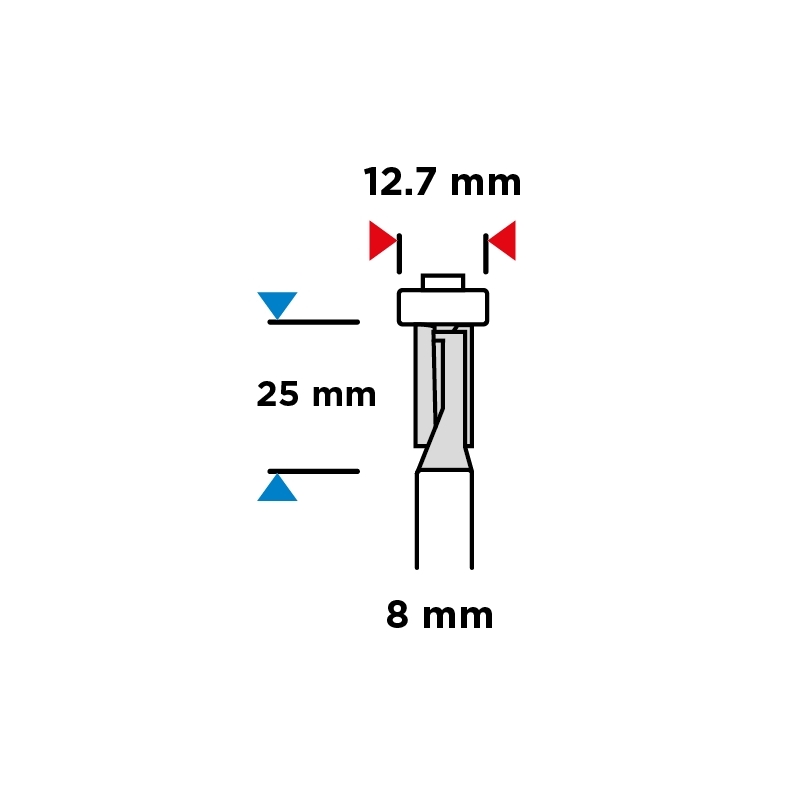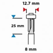 Frez prosty z dolnym łożyskiem, płytka z węglika spiekanego (HM), średnica robocza freza 12.7 mm, długość robocza 25 mm, średnica trzpienia 8 mm, frez łożyskowany, do drewna