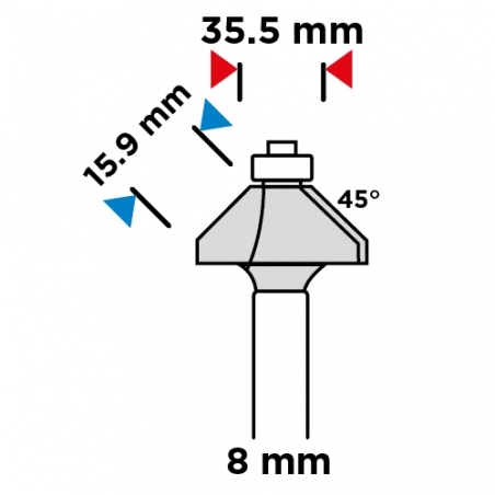Frez kształtowy z łożyskiem, płytka z węglika spiekanego (HM), średnica robocza freza 35.5 mm, długość robocza 15.9 mm, średnica trzpienia 8 mm, do drewna, płyta MDF, płyta wiórowa, sklejka
